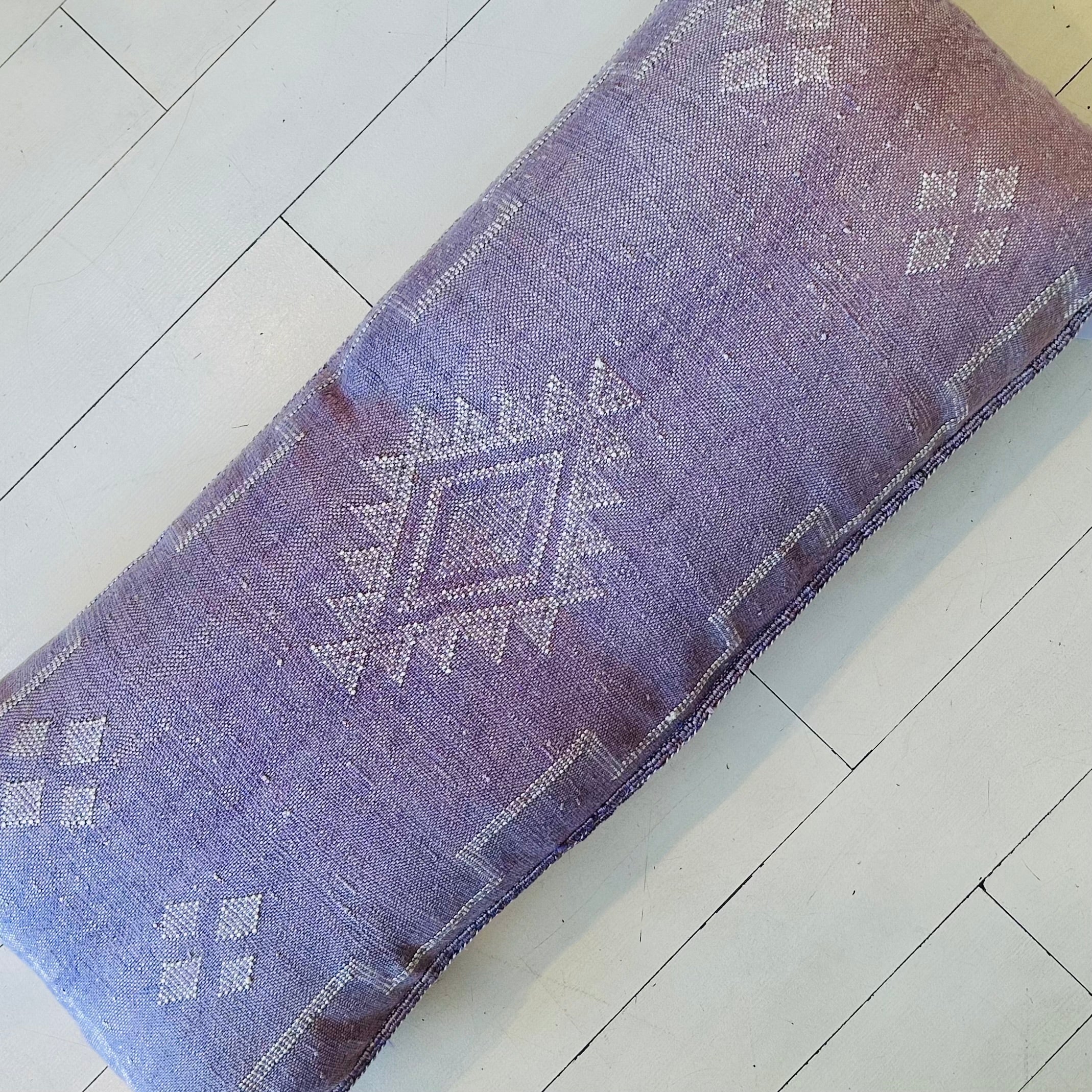 Our gorgeous hand-loomed ‘Cactus Silk’ Cushions look absolutely stunning on a bed or deep sofa, and can also be used as floor cushions. Add colour, character and charm to your home with these coveted cushions. Each is one-of-a-kind unique, and we've called this one 'Lilac'. Our double covers measure approximately 20” x 36”, with slight size variations due to their handmade nature. Sold stuffed or unstuffed. We highly recommend, and have used, 2 luxuriously soft, 24” synthetic down inserts for this cover. The inserts can be machine washed and dried; the cushion cover needs to be dry-cleaned to prevent colour bleeding.
